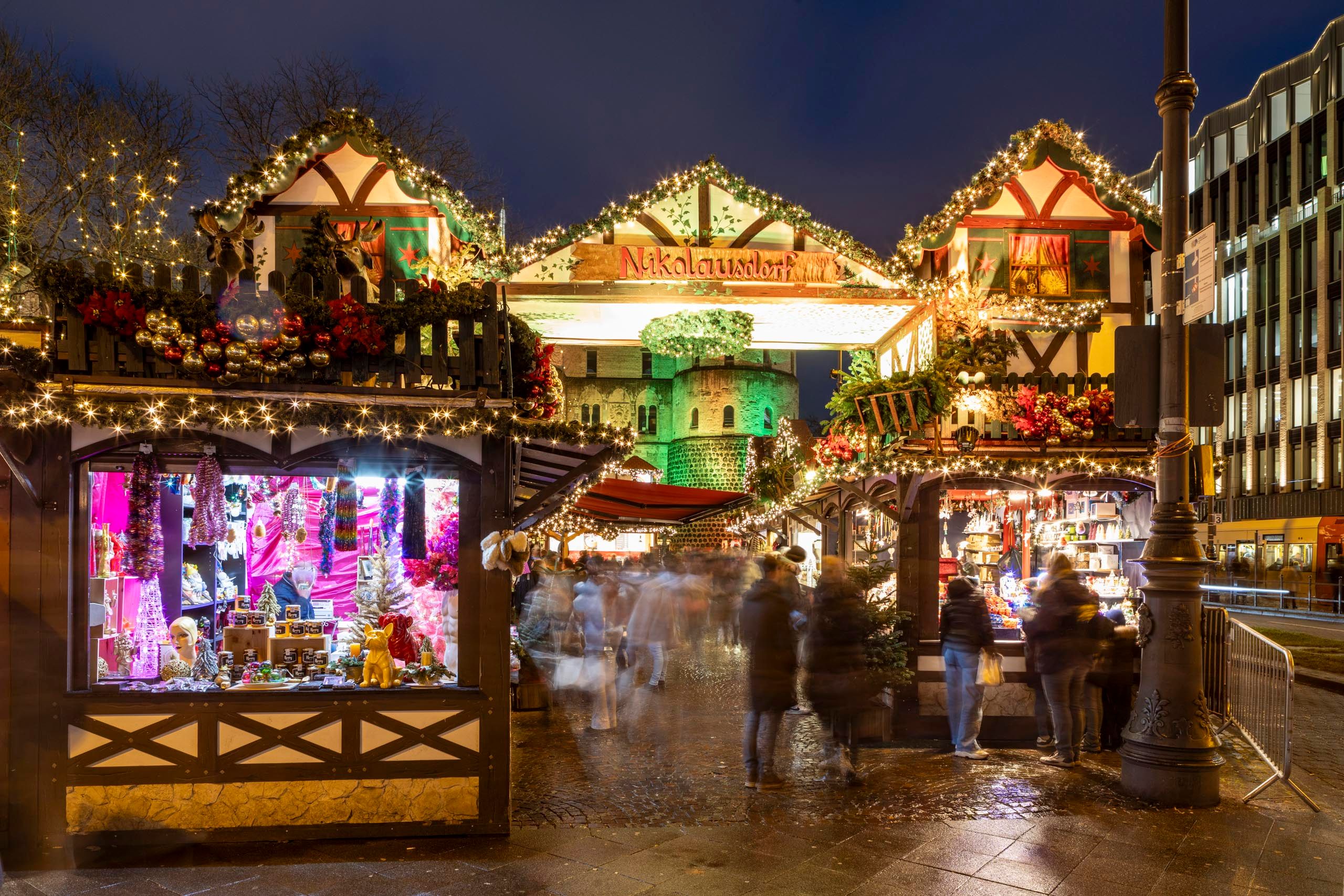 Gelegen aan de Rudolfplatz, tussen de Neumarkt en de trendy Belgische wijk, presenteert het magisch versierde Sinterklaasdorp zich voor de historische Hahnentorburg. Jong en oud kunnen genieten van het sfeervolle podiumprogramma, warme dranken uit de Nikolausstiefelbeker en de kerstmagie tussen de gezellige dorpsstraatjes.