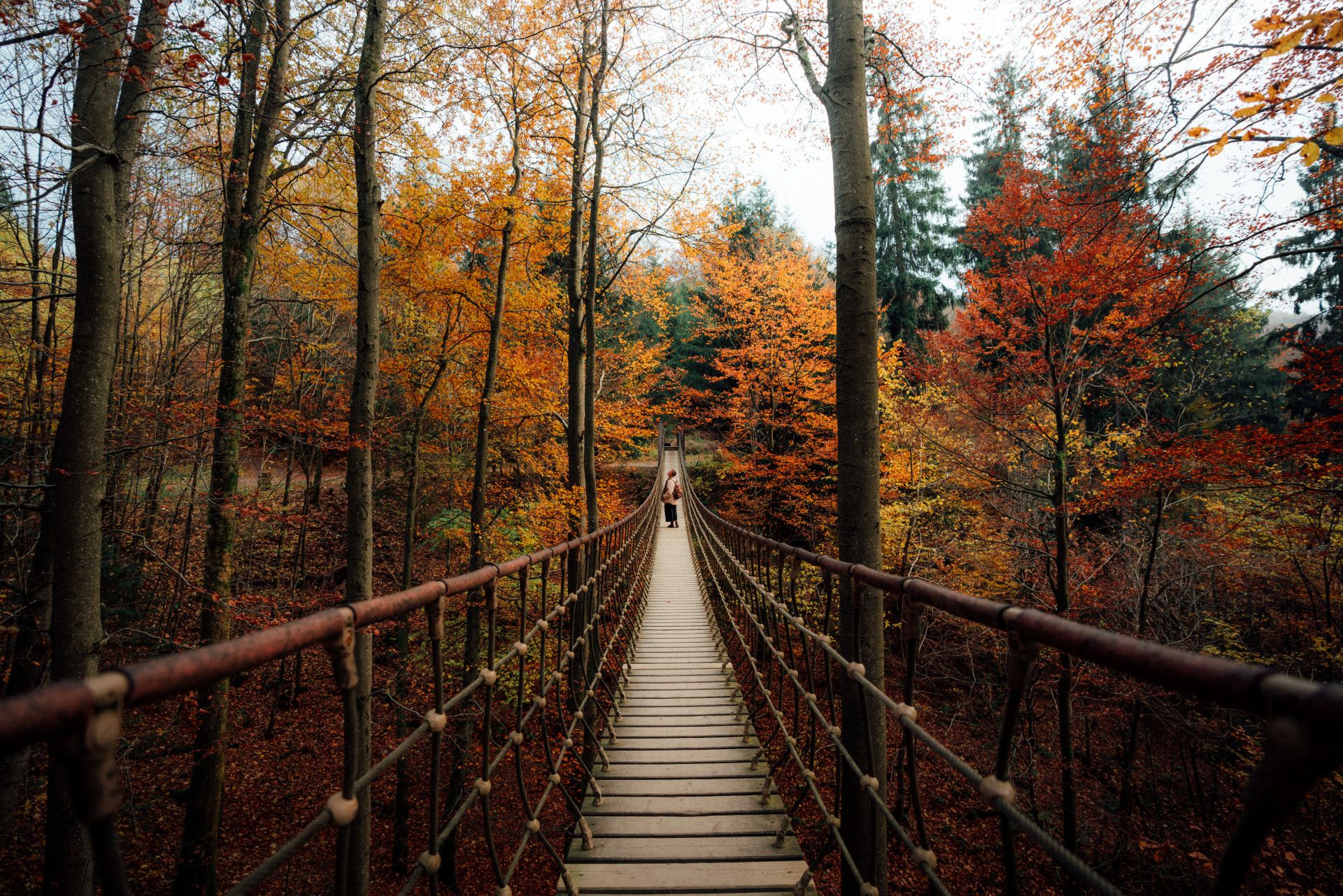 - Hier is een hangbrug midden in het bos